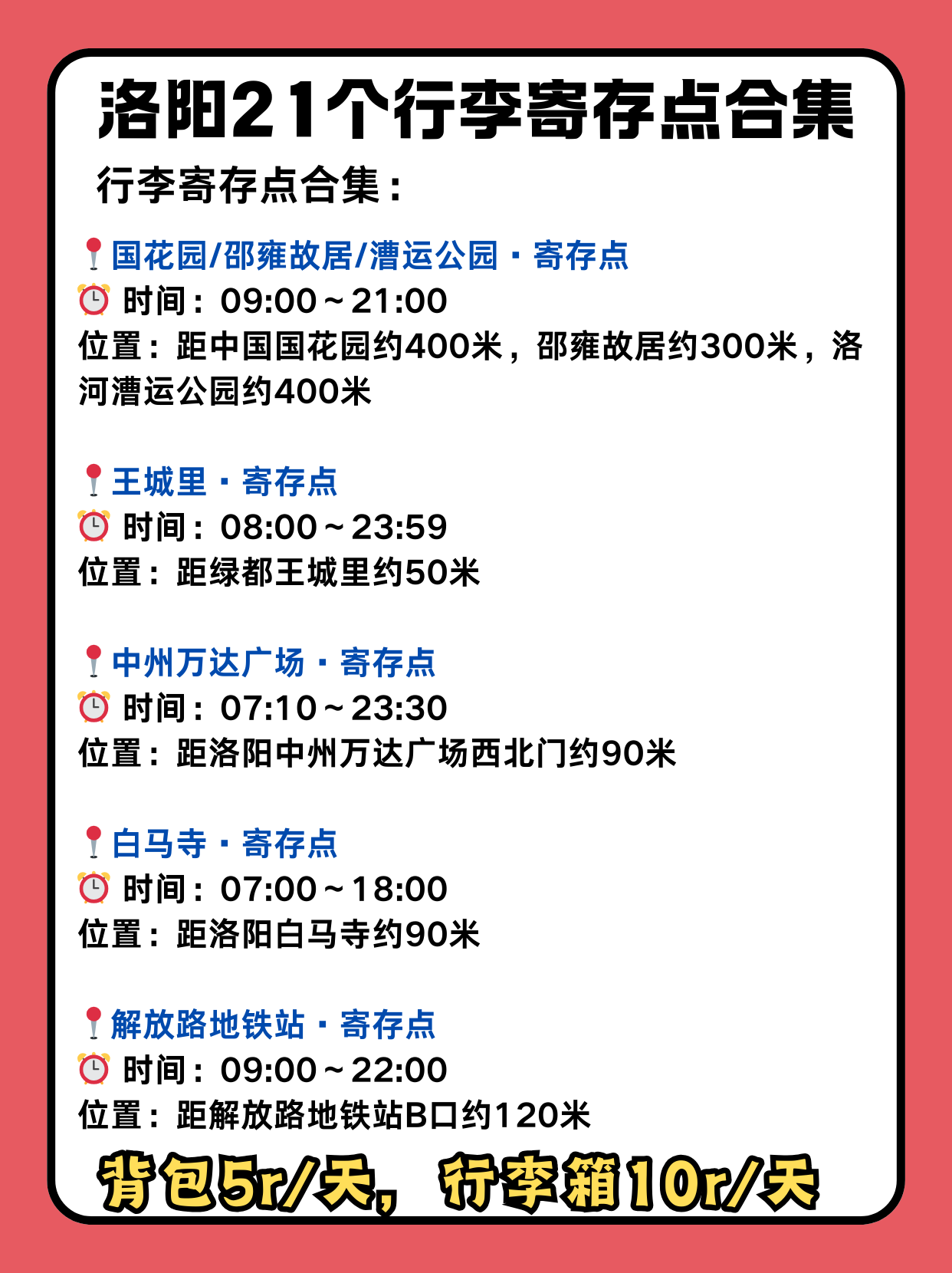 ⭕下面是洛阳行李寄存点信息: